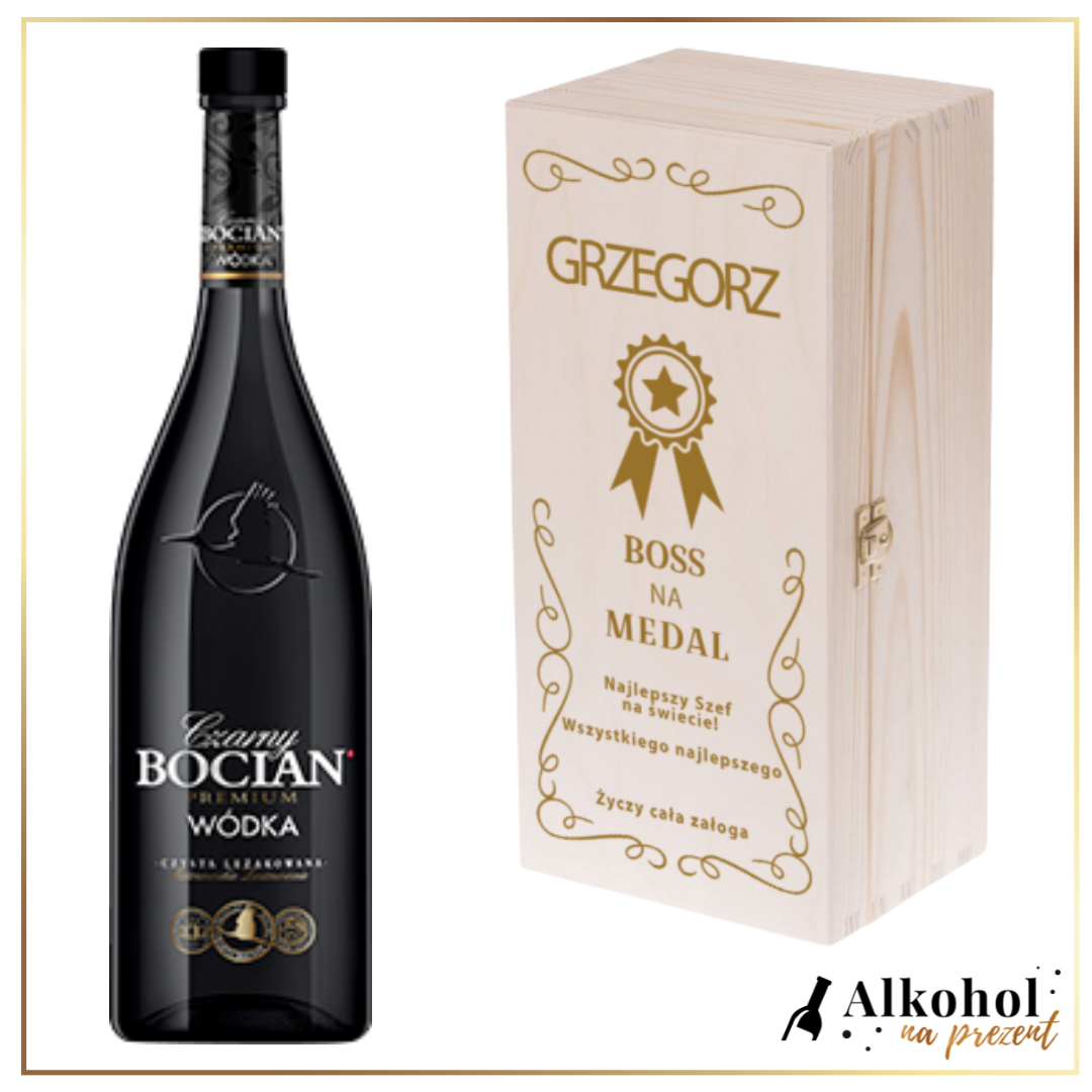 Wódka to najczęstsza odpowiedź na pytanie, jaki alkohol kupić na urodziny, wyjątkową okazję czy ślub. Butelka wódki będzie prezentem doskonałym niezależnie od wieku i płci. Bocian to wybrona wódka, która będzie odpowiednia do wręczenia na każdą okazję. Wódka w skrzynce z dedykacją to elegancki, oryginalny i luksusowy prezent. Skrzynka z imieniem, wierszykiem, życzeniami czy specjalną dedykacją będzie prezentem podarowanym prosto z serca. Skrzynka z własnym tekstem to unikalny upominek skierowany do konkretnej osoby.