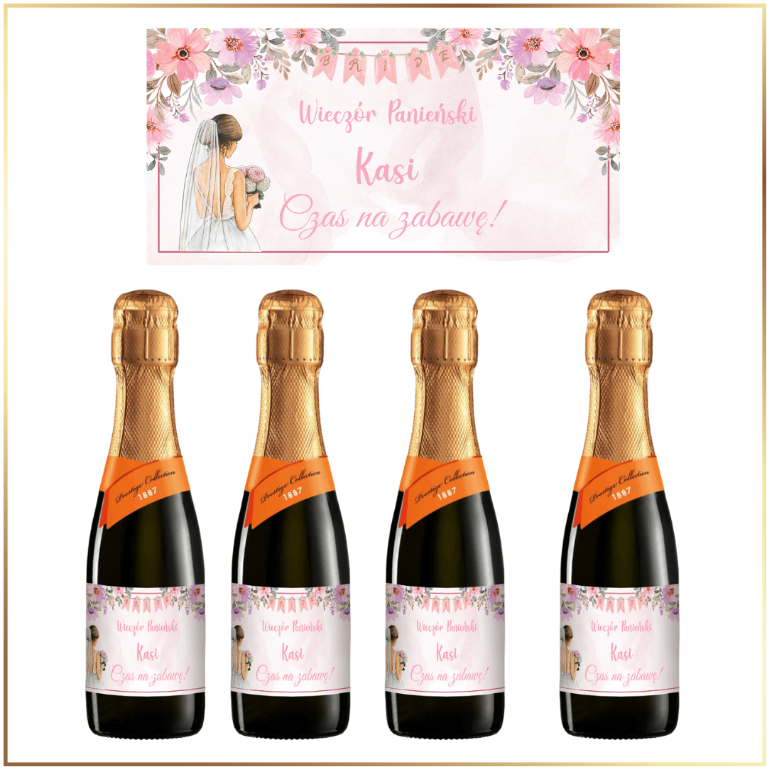 Zestaw mini butelek Prosecco z personalizacją i grafiką Panny Młodej to elegancki i oryginalny dodatek, który idealnie podkreśli wyjątkowy charakter wieczoru panieńskiego. Każda butelka zawiera delikatne, musujące Prosecco, które doskonale komponuje się z radosną atmosferą świętowania, a personalizowana etykieta z wizerunkiem przyszłej Panny Młodej nadaje całości osobistego i niepowtarzalnego charakteru. Możliwość dodania imienia, daty wydarzenia lub krótkiej dedykacji sprawia, że każda butelka staje się nie tylko eleganckim upominkiem, ale także wyjątkową pamiątką na lata. Starannie wykonana grafika i wysoka jakość trunku sprawiają, że zestaw świetnie sprawdzi się jako prezent dla uczestniczek imprezy, dekoracja stołu lub oryginalny gadżet do wspólnego toastu. To idealny wybór dla każdej przyszłej Panny Młodej, która pragnie, aby jej wieczór panieński był dopracowany w najmniejszych detalach i pełen niezapomnianych chwil.