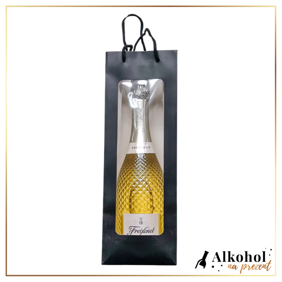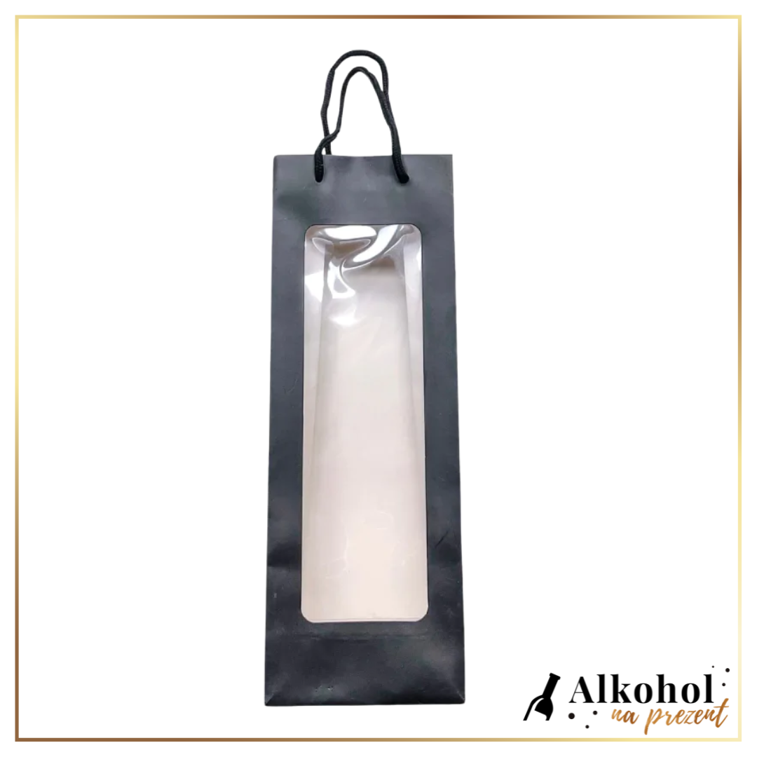 Stylowa i praktyczna torebka upominkowa wykonana z wysokiej jakości, sztywnego papieru w klasycznym czarnym kolorze. Idealnie dopasowana do jednej butelki alkoholu (wino, whisky, nalewka itp.). Jej wyjątkowym atutem jest przezroczyste okienko z tworzywa sztucznego, które efektownie eksponuje zawartość, nadając prezentowi elegancki i nowoczesny charakter.