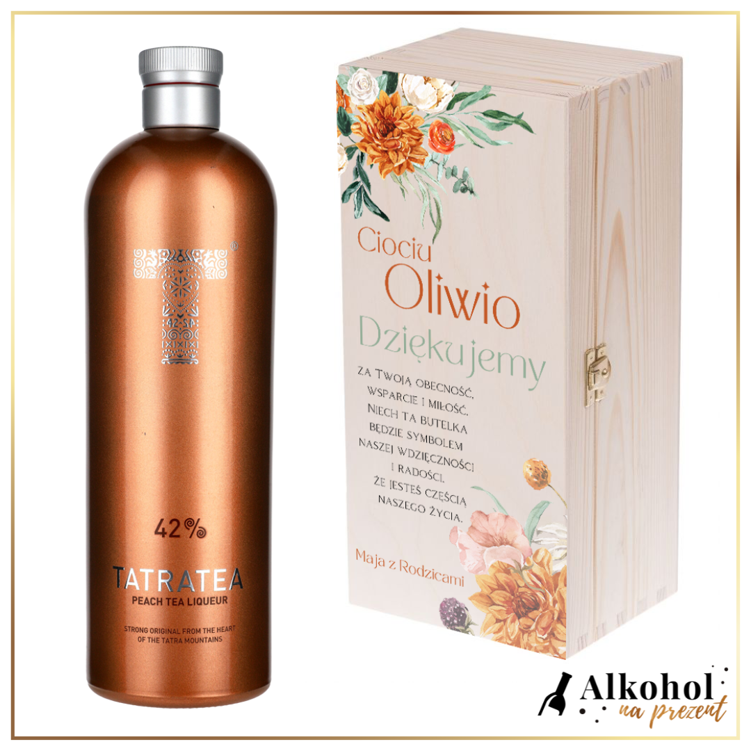 DZIĘKUJEMY CIOCIU LIKIER TATRATEA PEACH W SKRZYNCE Z NADRUKIEM - PREZENT DLA CHRZESTNYCH