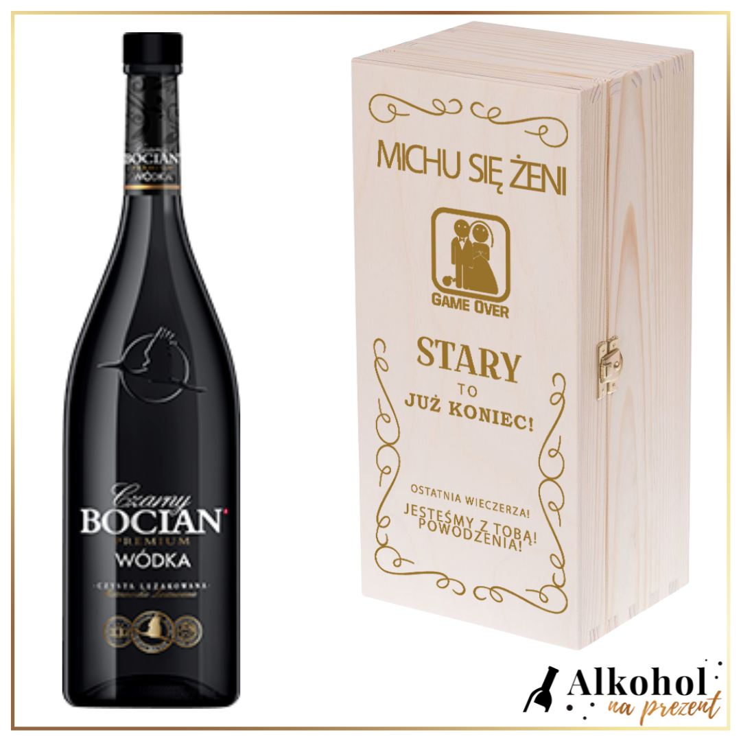 Wódka to najczęstsza odpowiedź na pytanie, jaki alkohol kupić na wieczór kawalerski. Butelka wódki będzie prezentem doskonałym dla mężczyzny. Bocian to wybrona wódka, która będzie odpowiednia do wręczenia na każdą okazję. Wódka w skrzynce z dedykacją to elegancki, oryginalny i luksusowy prezent. Skrzynka z imieniem, wierszykiem, życzeniami czy specjalną dedykacją będzie prezentem podarowanym prosto z serca. Skrzynka z własnym tekstem to unikalny upominek skierowany do przyszłego Pana Młodego.