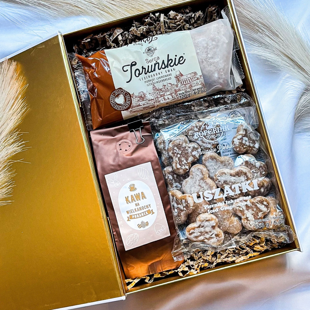 KAWA I PIERNIKI W ELEGANCKIM PUDEŁKU - ZESTAW NA WIELKANOC