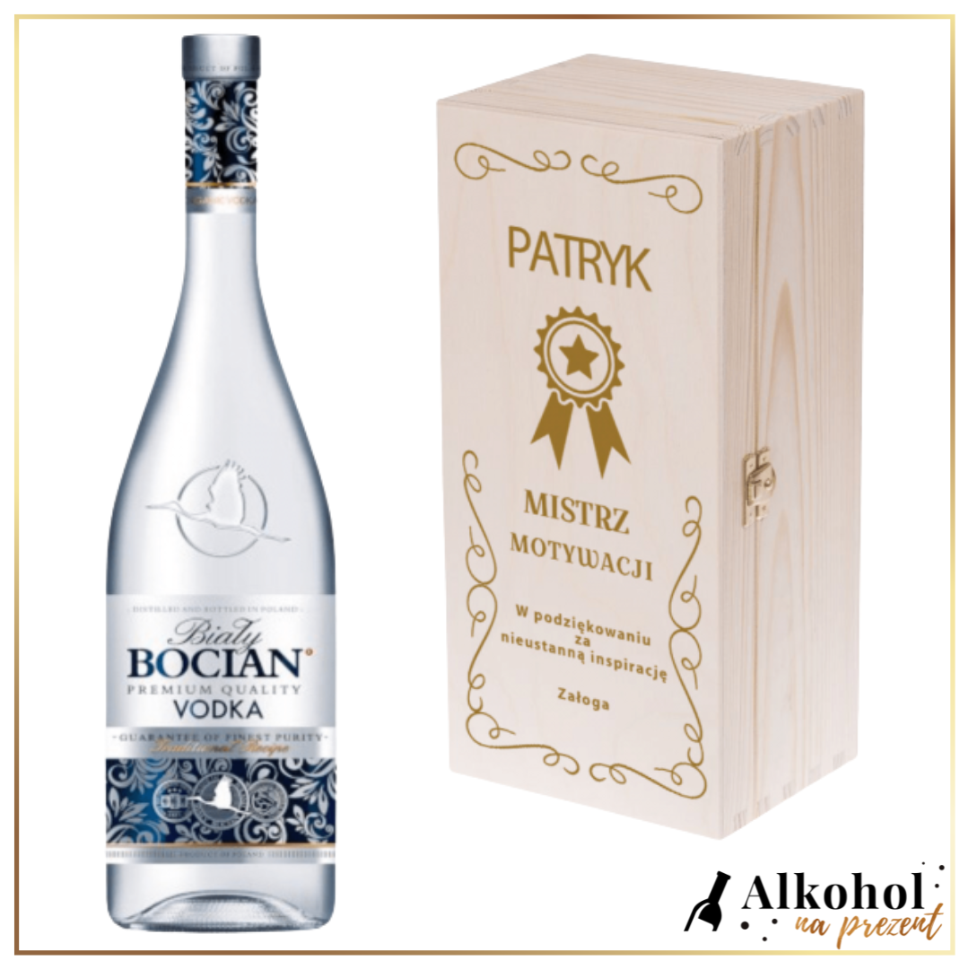 Wódka to najczęstsza odpowiedź na pytanie, jaki alkohol kupić na urodziny, wyjątkową okazję czy ślub. Butelka wódki będzie prezentem doskonałym niezależnie od wieku i płci. Bocian to tradycyjna polska wódka, która będzie odpowiednia do wręczenia na każdą okazję. Wódka w skrzynce z dedykacją to elegancki, oryginalny i luksusowy prezent. Jasna skrzynka z imieniem, wierszykiem, życzeniami czy specjalną dedykacją będzie prezentem podarowanym prosto z serca. Skrzynka z własnym tekstem to unikalny upominek skierowany do konkretnej osoby.