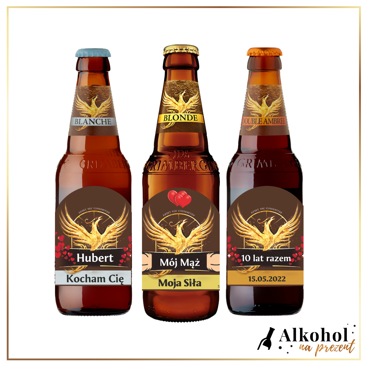 Czy podpisujesz się pod hasłem „Mój Mąż – Moja Siła”? Jeżeli tak, zobacz, jak prezentuje się okolicznościowy zestaw trzech piw Grimbergen, które już na pierwszy rzut oka wyróżniają się spersonalizowanymi etykietami. Mogą znaleźć się na nich np. data rocznicy ślubu, imię męża czy osobiste życzenia. To Ty decydujesz – podobnie jak o tym, kiedy wręczysz upominek, np. na urodziny, walentynki czy dzień chłopaka 30 września.