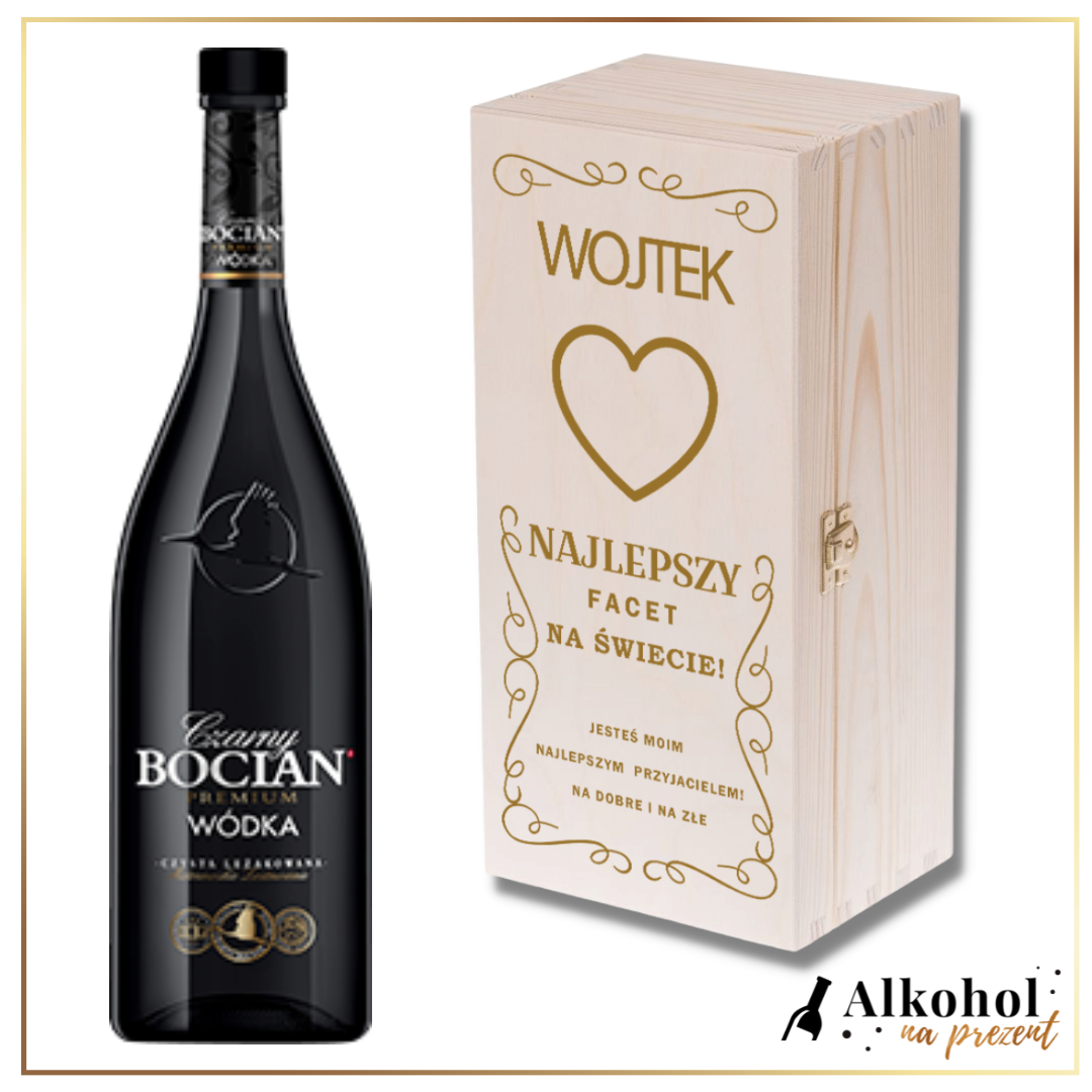 Wódka to najczęstsza odpowiedź na pytanie, jaki alkohol kupić na urodziny, wyjątkową okazję czy ślub. Butelka wódki będzie prezentem doskonałym niezależnie od wieku i płci. Bocian to wybrona wódka, która będzie odpowiednia do wręczenia na każdą okazję. Wódka w skrzynce z dedykacją to elegancki, oryginalny i luksusowy prezent. Czarna skrzynka z imieniem, wierszykiem, życzeniami czy specjalną dedykacją będzie prezentem podarowanym prosto z serca. Skrzynka z własnym tekstem to unikalny upominek skierowany do konkretnej osoby.