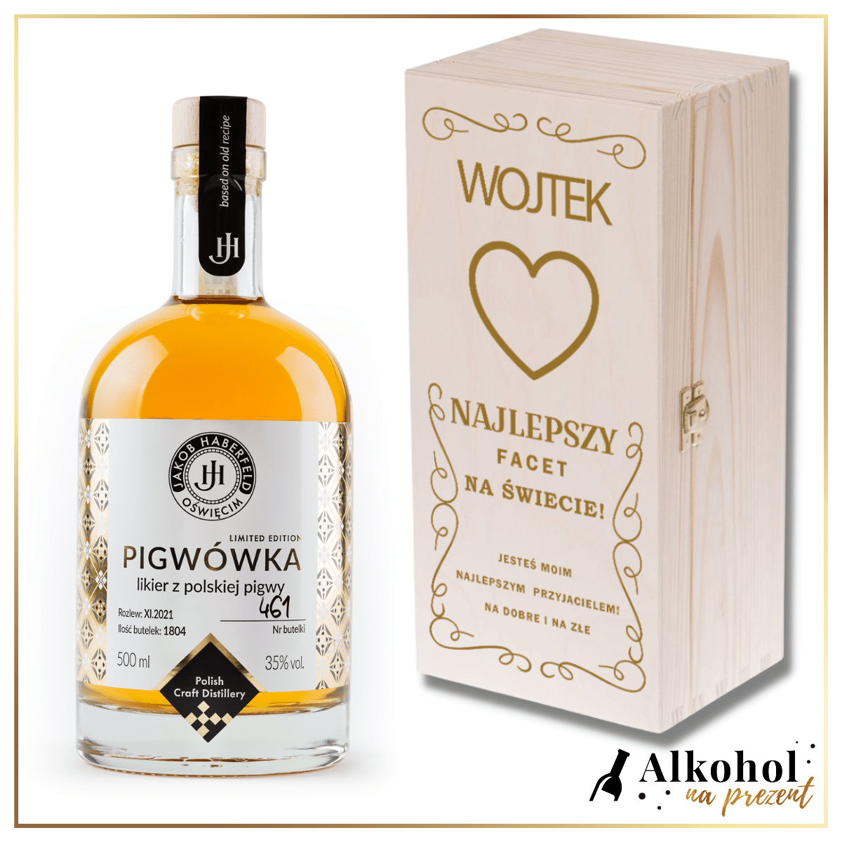 NAJLEPSZY FACET NA ŚWIECIE LIKIER JAKOB HABERFELD PIGWÓWKA 0.5L W SKRZYNCE Z NADRUKIEM - PREZENT DLA UKOCHANEGO
