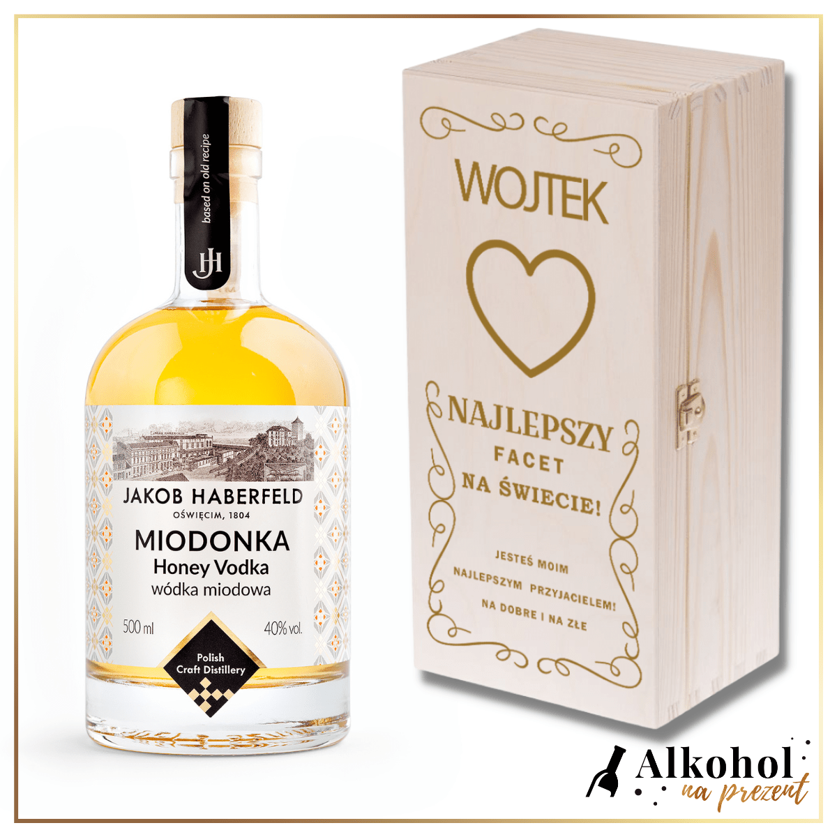 NAJLEPSZY FACET NA ŚWIECIE WÓDKA JAKOB HABERFELD MIODONKA 0.5L W SKRZYNCE Z NADRUKIEM - PREZENT NA DZIEŃ MĘŻCZYZNY