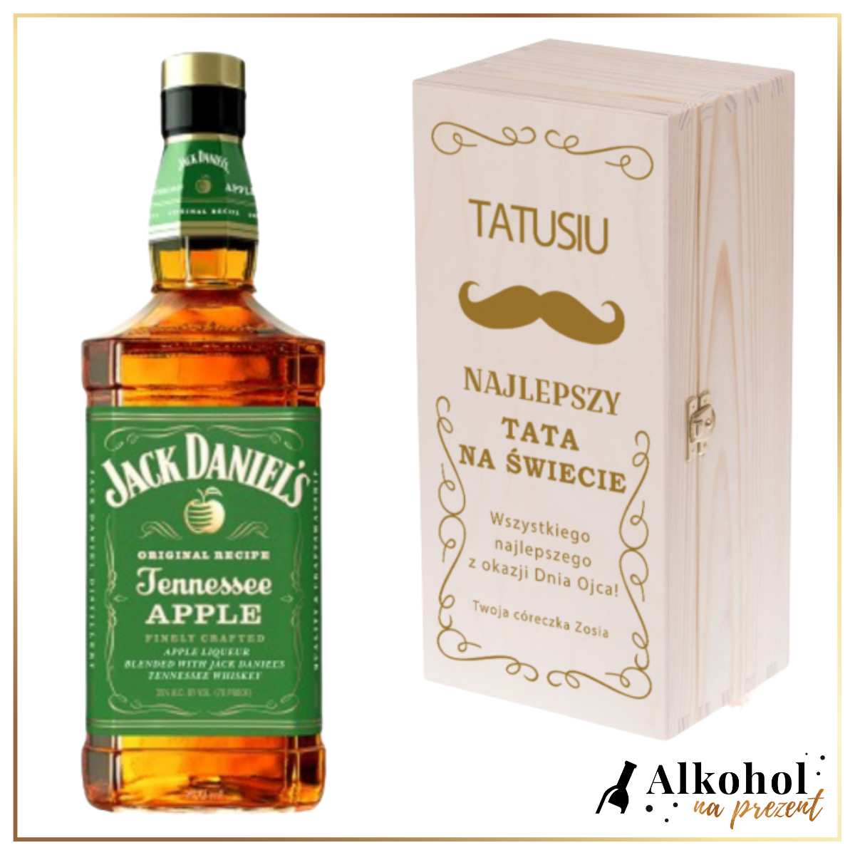 NAJLEPSZY TATA NA ŚWIECIE JACK DANIEL'S APPLE +DREWNIANA SKRZYNKA Z WŁASNYM NADRUKIEM