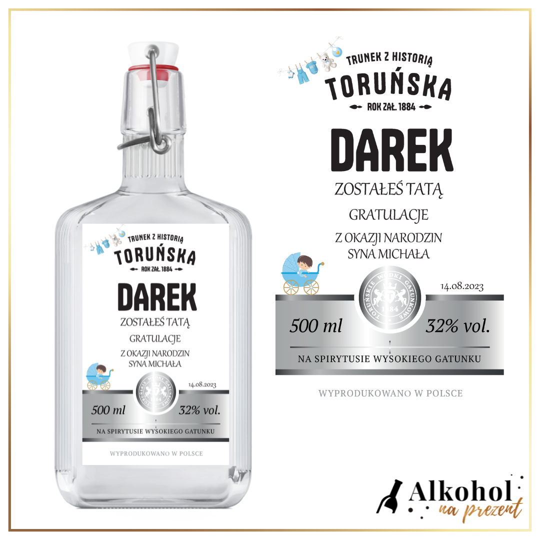 NARODZINY SYNA WÓDKA TORUŃSKA CZYSTA - PREZENT NA PĘPKOWE
