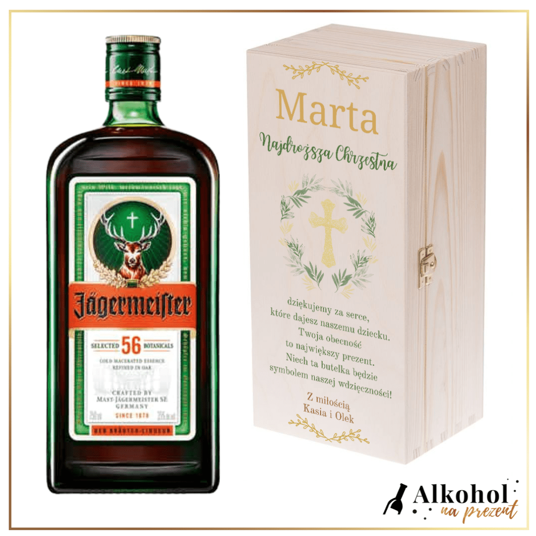 PAMIĄTKA CHRZTU ŚWIĘTEGO LIKIER JAGERMEISTER SKRZYNCE Z NADRUKIEM - PREZENT DLA CHRZESTNYCH