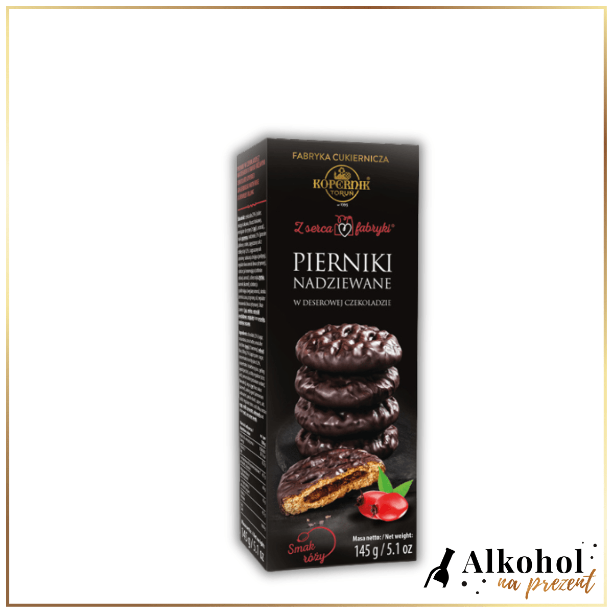 Fabryka Kopernik dba o każdy detal, dlatego pierniki w czekoladzie deserowej z nadzieniem różanym są przygotowywane zgodnie z tradycyjną recepturą, wzbogaconą o nowoczesne akcenty smakowe. Naturalne składniki, najwyższej jakości czekolada oraz unikalne nadzienie sprawiają, że każdy piernik to prawdziwa rozkosz dla podniebienia. To wyjątkowy przysmak, który łączy w sobie toruńską tradycję z nutą elegancji i wyrafinowania.