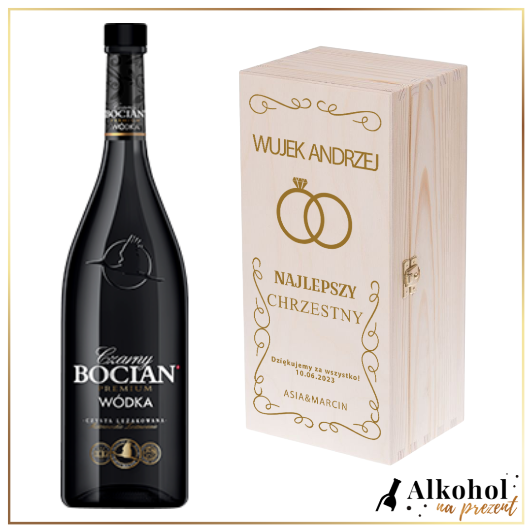 Wódka to najczęstsza odpowiedź na pytanie, jaki alkohol kupić na urodziny, wyjątkową okazję, ślub czy podziękowania. Butelka wódki będzie prezentem doskonałym niezależnie od wieku i płci. Bocian to wybrona wódka, która będzie odpowiednia do wręczenia na każdą okazję. Wódka w skrzynce z dedykacją to elegancki, oryginalny i luksusowy prezent. Skrzynka z imieniem, wierszykiem, życzeniami czy specjalną dedykacją będzie prezentem podarowanym prosto z serca. Skrzynka z własnym tekstem to unikalny upominek skierowany do konkretnej osoby.