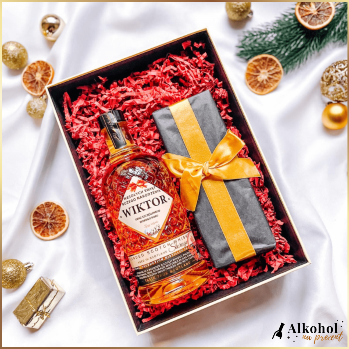 Szukasz prezentu pod choinkę? A może potrzebujesz prezentów dla swoich klientów lub kontrahentów? Trafiłeś idealnie!  Alkohol na Prezent posiada szeroką gamę prezentów świątecznych. Znajdziesz u nas prezent na Boże Narodzenie dla niej i dla niego. Prezenty dla mamy i dla taty, dla babci i dla dziadka oraz dla rodzeństwa. Zaskocz najbliższych wyjątkową personalizowaną niespodzianką. Wpisz swoje życzenia na etykiecie i przypraw innych o łzy w oczach. W naszej ofercie znajdziesz również zestawy świąteczne, upominkowe kosze, personalizowane skrzynki oraz boxy.