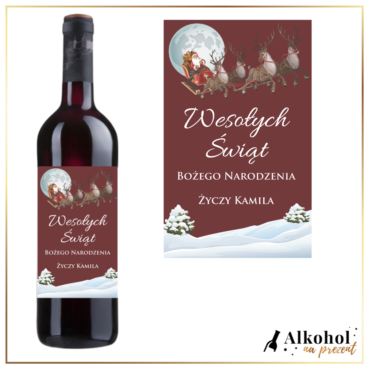 Coraz bliżej święta… Szukasz prezentu pod choinkę? A może potrzebujesz prezentów dla swoich klientów lub kontrahentów? Trafiłeś idealnie!  Alkohol na Prezent posiada szeroką gamę prezentów świątecznych. Znajdziesz u nas prezent na Boże Narodzenie dla niej i dla niego. Prezenty dla mamy i dla taty, dla babci i dla dziadka. Zaskocz najbliższych wyjątkową personalizowaną niespodzianką. Wpisz swoje życzenia na etykiecie i przypraw innych o łzy w oczach. W naszej ofercie znajdziesz również zestawy świąteczne, upominkowe kosze oraz boxy. Zajrzyj w inne zakładki.