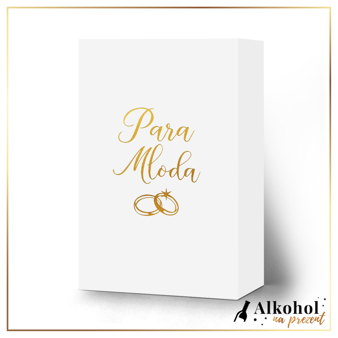 Każda butelka w zestawie ozdobiona jest personalizowaną etykietą, przygotowaną specjalnie dla Młodej Pary. Jedna z nich skierowana jest do Pana Młodego, druga – do Panny Młodej. Możemy umieścić na nich: