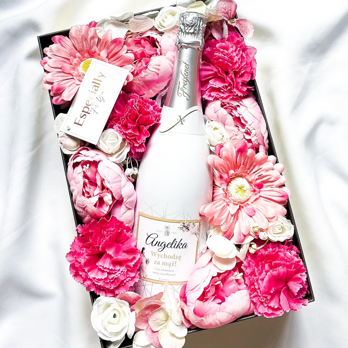 Wyjątkowość prezentu podkreśla Flower Box  – pudełko glamour, które możesz zamówić w naszym sklepie internetowym. Zachęcamy do sprawdzenia bogatej oferty upominków, którymi możesz uzupełnić zamówienie ozdobnie zapakowanego i wyjątkowego z uwagi na personalizację wina cava cenionej marki Freixenet z tradycjami sięgającymi 1861 roku.
