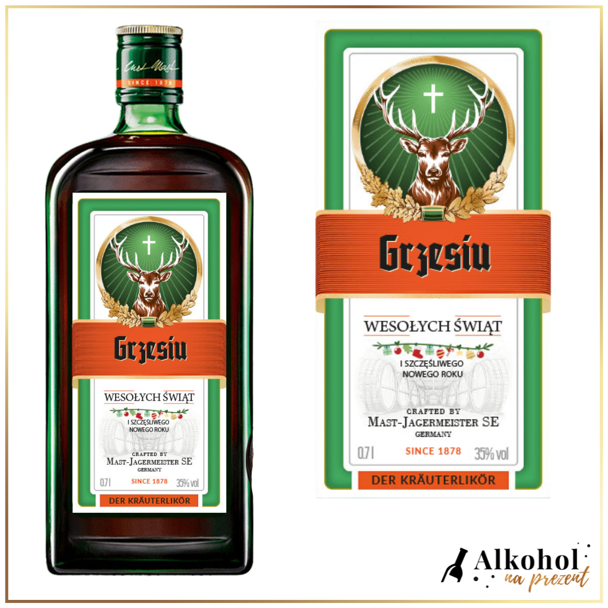 Wprowadź magię świąt w nietuzinkowy sposób dzięki butelce Jägermeistera z personalizowaną etykietą inspirowaną motywem świątecznej girlandy. To oryginalny pomysł na prezent, który łączy kultowy ziołowy likier z wyjątkowym, świątecznym designem. Etykieta ozdobiona wizerunkiem świątecznych gałązek, światełek, wstążek i delikatnych ozdób zimowych, idealnie wpisuje się w klimat Bożego Narodzenia i nadaje butelce wyjątkowego charakteru.