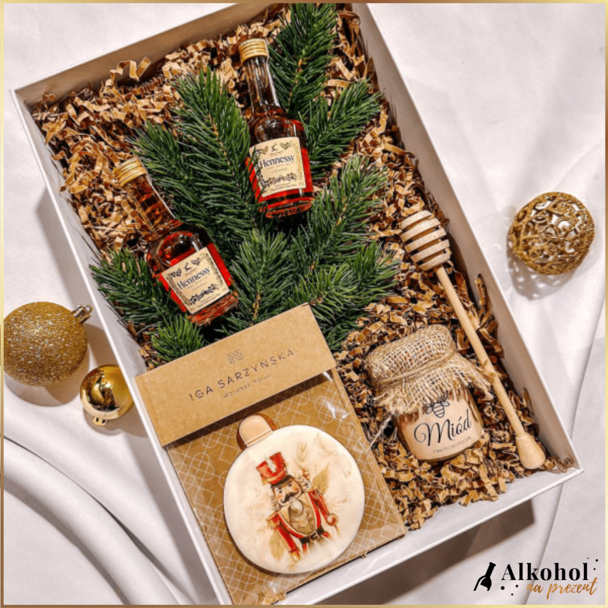 ŚWIĄTECZNY ZESTAW 2X HENNESSY MINI + PIERNIK I MIÓD - ZESTAW PREZENTOWY NA BOŻE NARODZENIE