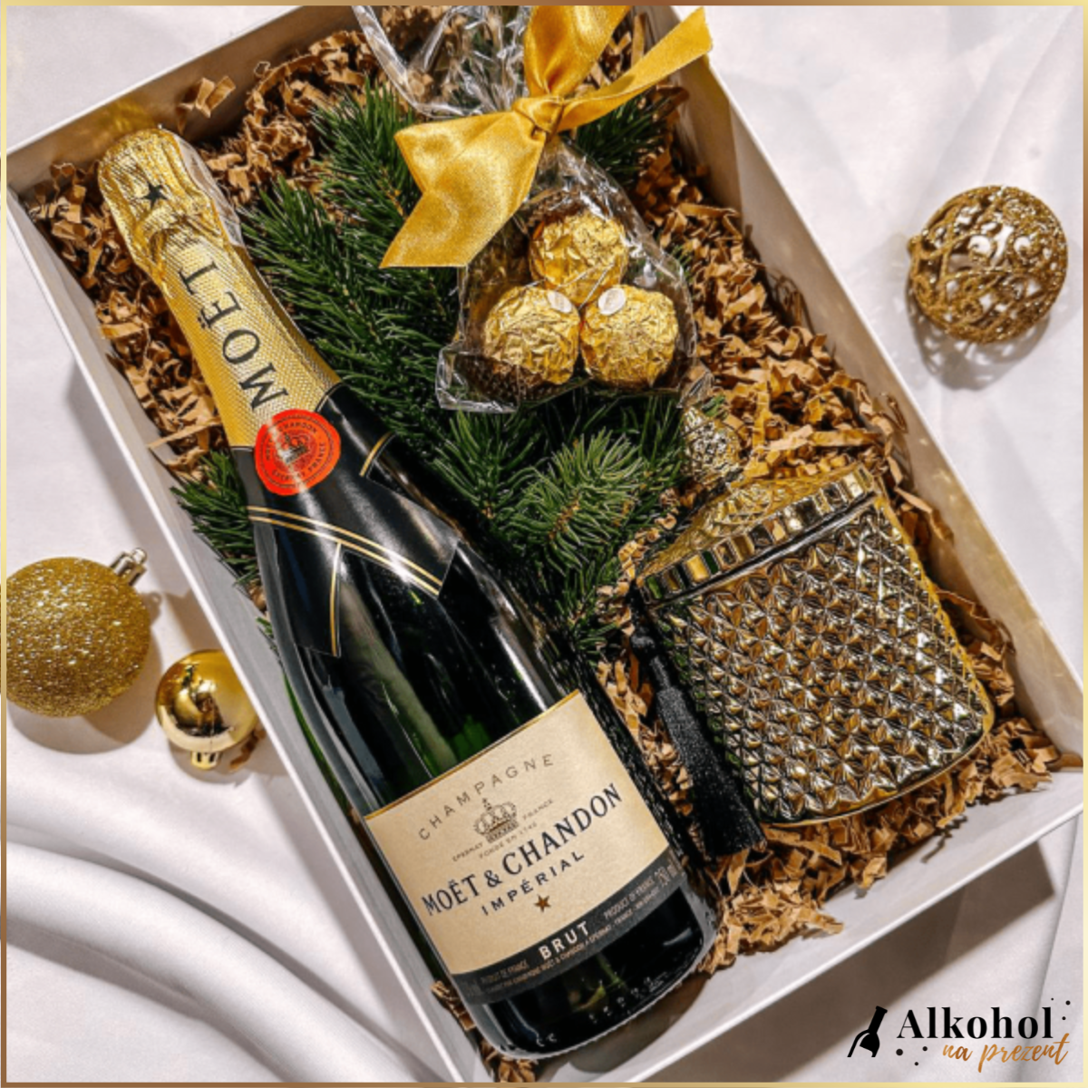 ŚWIĄTECZNY ZESTAW SZAMPAN MOËT & CHANDON BRUT IMPERIAL + FERRERO ROCHER - ZESTAW PREZENTOWY NA BOŻE NARODZENIE