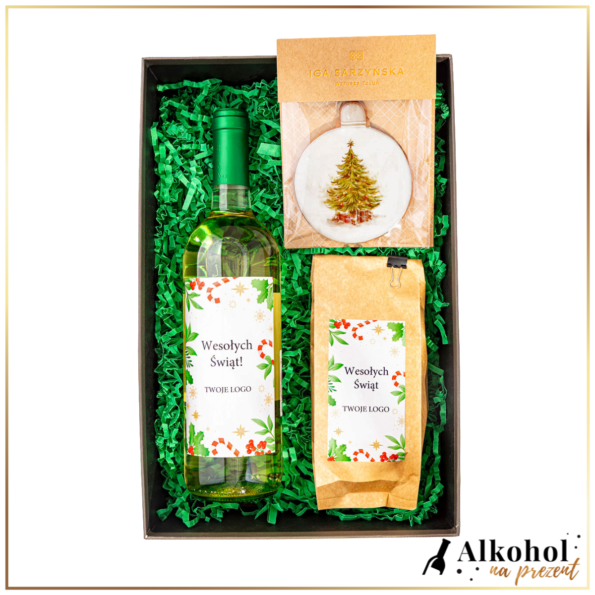 ŚWIĄTECZNY ZESTAW WINO BIAŁE Z KAWĄ - ZESTAW PREZENTOWY NA ŚWIĘTA BOŻEGO NARODZENIA