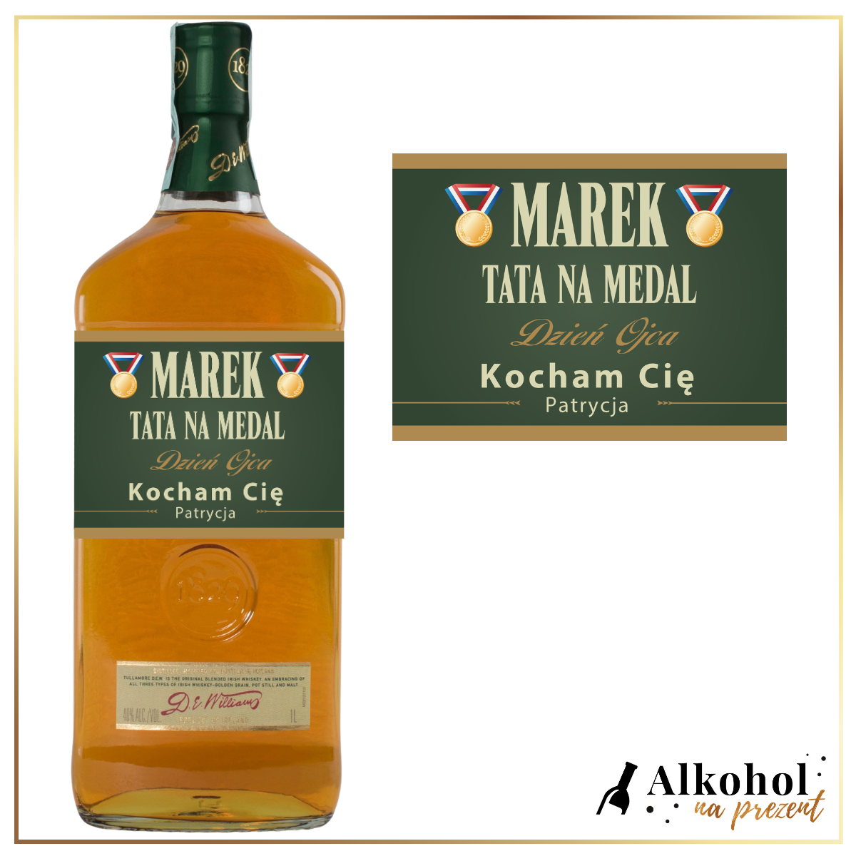 Wybierz prezent, który ma w sobie duszę. Zamów Tullamore z personalizowaną etykietą na Dzień Ojca i podaruj swojemu Tacie smak irlandzkiej legendy w oprawie Twoich najcieplejszych słów.