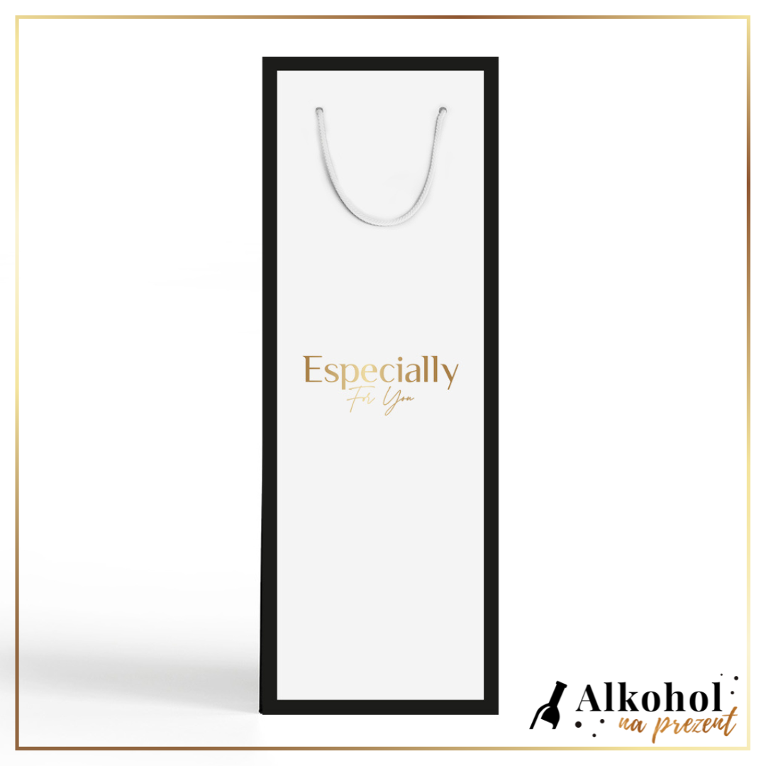 Elegancka torebka prezentowa w klasycznym białym kolorze, ozdobiona subtelnym, złotym napisem „Especially For You” oraz logo naszej firmy, to doskonały wybór do zapakowania butelki alkoholu lub butelki alkoholu w małym pudełku prezentowym. Jej minimalistyczny, a zarazem stylowy design sprawia, że świetnie podkreśla wyjątkowy charakter upominku. Solidne wykonanie oraz starannie dobrane detale gwarantują nie tylko estetyczny wygląd, ale także wygodę użytkowania. To idealne rozwiązanie na eleganckie i gustowne wręczenie prezentu na każdą okazję.