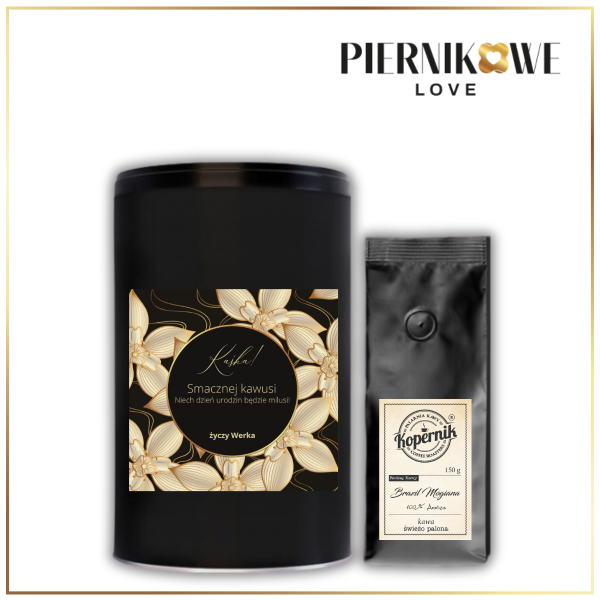 Prezent idealny nie istnieje? Elegancka, czarna puszka ze spersonalizowaną etykietą to coś niebanalnego i oryginalnego. Niespodzianka, która na długo pozostanie w pamięci osoby obdarowanej. Świeżo wypalana kawa w pięknych opakowaniach sprawia, że każdy poczuje się wyjątkowo. Dedykowana etykieta wyraża więcej niż 1000 słów - napisz życzenia i czekaj na uśmiech na twarzy obdarowanej osoby!
