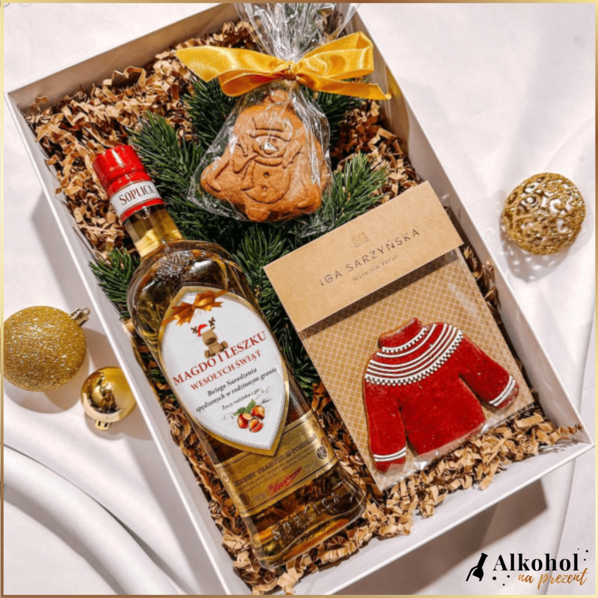 Jeśli poszukujesz nalewki na prezent z własną etykietą to trafiłeś idealnie. A może potrzebujesz prezentu dla swoich klientów lub kontrahentów? Trafiłeś idealnie!  Alkohol na Prezent posiada szeroką gamę prezentów świątecznych. Znajdziesz u nas prezent pod choinkę dla niej i dla niego. Zaskocz najbliższych wyjątkową niespodzianką. W naszej ofercie znajdziesz również inne zestawy świąteczne, upominkowe kosze, personalizowane skrzynki oraz boxy.