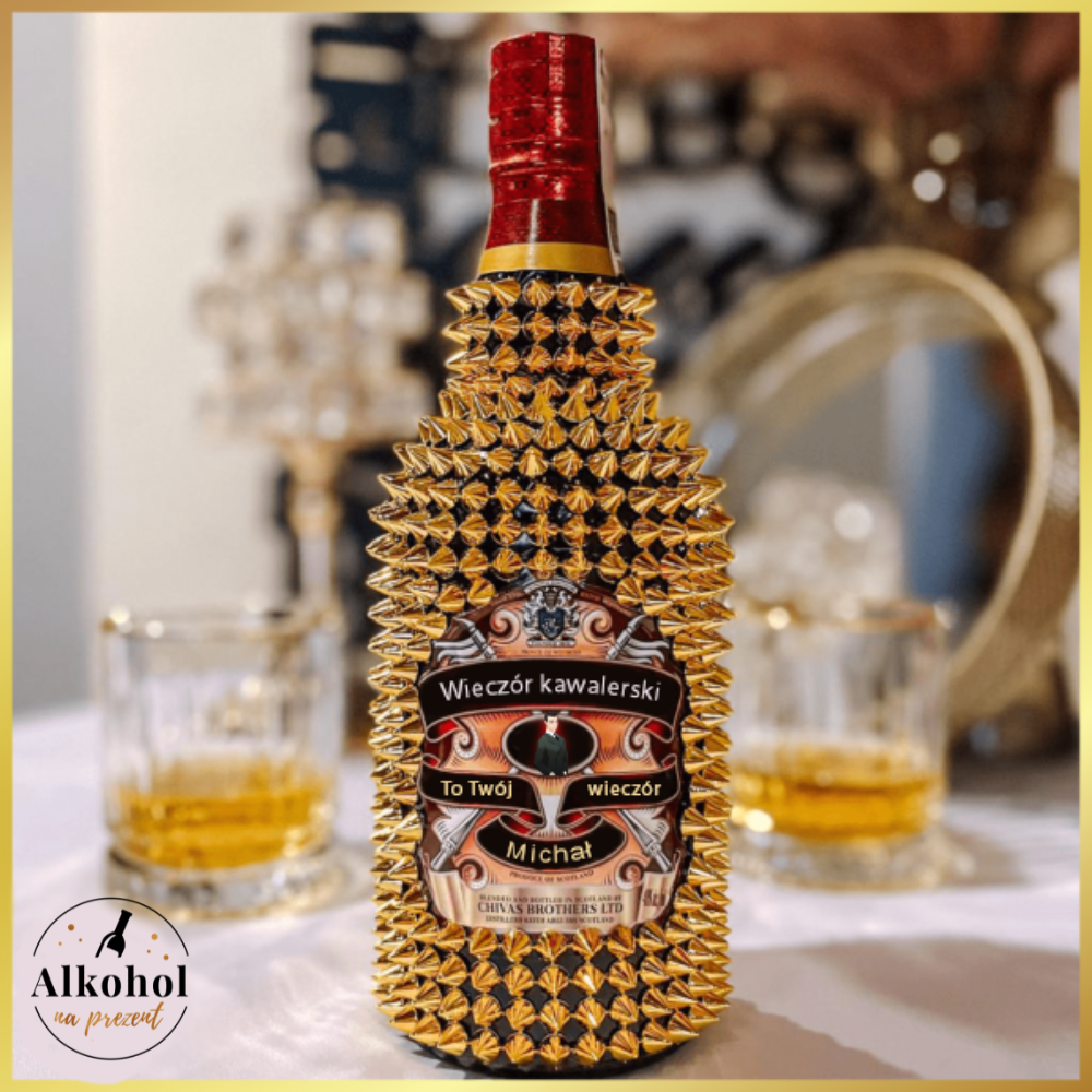 Nowość i Hit na rynku! Chivas Regal ze złotymi kolcami/ ćwiekami. Ekskluzywna butelka sprawi, że obdarowany będzie w totalnym szoku. Zaskocz swoich bliskich wyjątkowym luksusowym prezentem. Butelka jest ręcznie zdobiona, dbamy o estetykę i wykonanie. Takie wyjątkowe prezenty tworzymy z myślą o Tobie. Efekt WOW gwarantowany! :)