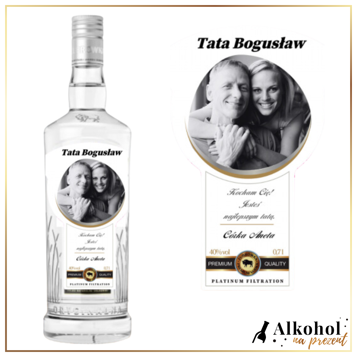 Nowość na naszej stronie!!! Personalizowana etykieta z WŁASNYM ZDJĘCIEM. Chcesz pokazać obdarowanej osobie jak bardzo Ją kochasz i w tym wyjątkowym dla niej dniu obdarować Ją wyjątkowym prezentem. Trafiłeś idealnie! Alkohol Na Prezent posiada szeroką gamę prezentów z okazji Dnia Taty.