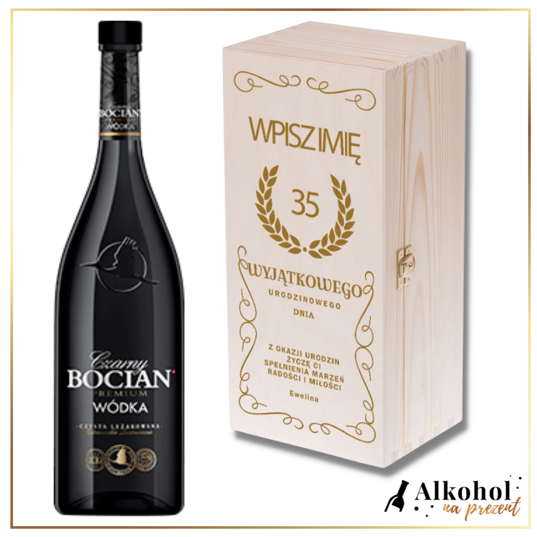 Wódka to najczęstsza odpowiedź na pytanie, jaki alkohol kupić na urodziny, wyjątkową okazję czy ślub. Butelka wódki będzie prezentem doskonałym niezależnie od wieku i płci. Bocian to wybrona wódka, która będzie odpowiednia do wręczenia na każdą okazję. Wódka w skrzynce z dedykacją to elegancki, oryginalny i luksusowy prezent. Czarna skrzynka z imieniem, wierszykiem, życzeniami czy specjalną dedykacją będzie prezentem podarowanym prosto z serca. Skrzynka z własnym tekstem to unikalny upominek skierowany do konkretnej osoby.