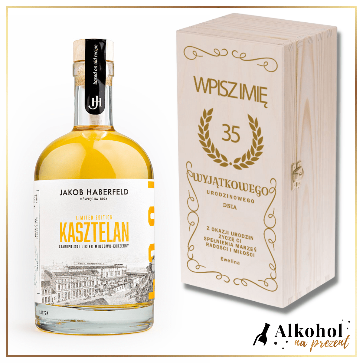 ŻEBY SIĘ MOGŁO URODZINOWY LIKIER JAKOB HABERFELD KASZTELAN 0.5L W SKRZYNCE Z NADRUKIEM - URODZINOWY PREZENT