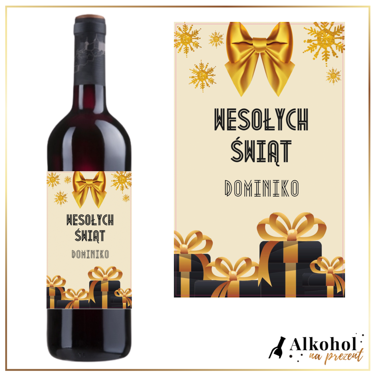 Coraz bliżej święta… Szukasz prezentu pod choinkę? A może potrzebujesz prezentów dla swoich klientów lub kontrahentów? Trafiłeś idealnie!  Alkohol na Prezent posiada szeroką gamę prezentów świątecznych. Znajdziesz u nas prezent na Boże Narodzenie dla niej i dla niego. Prezenty dla mamy i dla taty, dla babci i dla dziadka. Zaskocz najbliższych wyjątkową personalizowaną niespodzianką. Wpisz swoje życzenia na etykiecie i przypraw innych o łzy w oczach. W naszej ofercie znajdziesz również zestawy świąteczne, upominkowe kosze oraz boxy. Zajrzyj w inne zakładki.